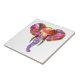 a traditional watercolor artwork of an african elephant in many different colors on a ceramic tile.