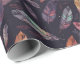 Colorful Feather Pattern on Black Background Wrapping Paper