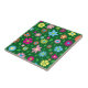 Colorful floral pattern on green background ceramic tile