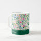 Enjoy your favorite drinks in fresh, preppy style with this personalized floral mug. Featuring a vibrant botanical pattern of pink, blue, and yellow blooms layered with lush greenery, this mug brings cheerful charm to every sip. The deep green accent band along the bottom showcases a personalized name in elegant script, adding a clean, custom touch that feels classic and refined. Perfect for coffee, tea, or hot cocoa, this mug blends everyday function with timeless floral style, making it a lovely addition to your kitchen or a thoughtful personalized gift.