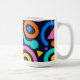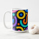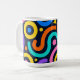 A lively mug design full of bold abstract shapes and vibrant curved lines inspired by modern pop art. The rich mix of yellow, teal, pink, and red creates a joyful rhythm — perfect for coffee lovers who crave creativity and color every morning.