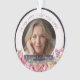 Honor a loved one’s memory with this elegant photo memorial ornament, featuring bright colorful flowers like pink peony, framing your cherished photo. The front includes your loved one’s name and dates, while the back displays another photo with the heartfelt message “Forever in our hearts.” A beautiful keepsake to remember and celebrate a life filled with love. Hanging on the Christmas tree or displaying year-round in remembrance.