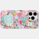 Customize this gorgeous modern colorful flower garden of flowers in pink, purple, blue and yellow iPhone 16 pro max case with your your initials in a modern CAP font in white on blue. It's so vibrant and happy!