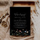 This colorful garden wildflower elopement reception card is perfect for a modern post elopement party. The design features seamless hand-painted burgundy, red, navy, blue, yellow, and blush wildflowers with botanical leaves.
