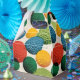 This striking pattern features brightly colored golf balls scattered across a warm, neutral background. Each ball is rendered with realistic dimpled texture, creating a tactile, playful surface rich in depth and detail. The bold palette of blues, greens, yellows, and reds gives the design a modern, energetic feel, making it perfect for sports-themed decor, contemporary interiors, wrapping paper, or creative surface design projects.