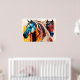 Expressive painting of two horses in vibrant colors! Dynamic brushstrokes in blue, orange, and red create movement and energy. Art perfect for home decor, fabric prints, and art prints. Conveys animal freedom and elegance in a modern and colorful style!
