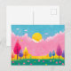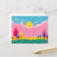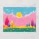 Colorful Illustrated Nature Postcard, Dreamy Fantasy Nature Art, Pink Sky & Whimsical Trees, Vibrant Fantasy Nature Scene