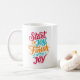 Brighten up your mornings with a boost of positivity! This vibrant coffee mug features the uplifting quote "Start in Joy Finish with Joy" in beautiful, colorful typography. Whether you're sipping your morning coffee or winding down with evening tea, this mug serves as a wonderful reminder to embrace happiness throughout your entire day. Its cheerful design makes it a perfect motivational gift for friends, family, or coworkers who need a little extra sunshine in their routine!