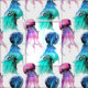 Colorful jellyfish underwater theme illustration form original waterocolor painting. Cute ocean theme