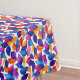 This tablecloth design features a vibrant and dynamic pattern of leaves in a variety of striking colors. The leaves are illustrated in shades of vivid purple, deep blue, bright orange, rich pink, and golden yellow, creating a lively and energetic feel. The leaves are arranged in a scattered pattern against a clean white background, allowing the bold colors to stand out prominently. this colorful and eye-catching tablecloth is perfect for adding a colorful and cheerful touch to any dining setting. generativecontent