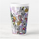 Colorful Tangle is back in the Mug and a Card collection. Colorful linear design on a fine sized coffee mug. Part of the “Mug and Card” series, where you send a card to express yourself to a person (cards are lovely, but seldom kept forever) so send them a matching mug too, so they remember the card and your words for them, every time they use the mug. Line pattern, segment from a mandala, flower center branching out into black and white leaves, with splashes of red, yellow, purple, orange and green.