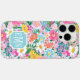 Customize this gorgeous modern colorful flower garden of flowers in pink, blue, orange, yellow and white iPhone 16 pro max case with your your initials in a modern CAP font in white on blue. It's so vibrant and happy!