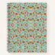 Colorful notebook with a detailed floral pattern on a light blue background. The design includes red, orange, and green elements, creating a vibrant, symmetrical layout.
