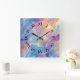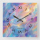 Colorful opal swirly flowing marble texture square wall clock