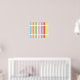 Geometric linear, rectangle, striped pattern of rainbow pastel hues of blue, orange, green, pink, purple, red and yellow.