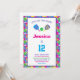 Green, pink, yellow and purple Pickleball birthday party invitation. Fully customizable. Two crossed colorful pickleball paddles and green pickleball. With RSVP card at the back