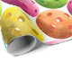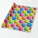 A fun wrapping paper design of colorful pickleballs in shades of fuchsia, yellow, blue, orange and green.