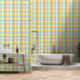 This cheerful wallpaper features a vibrant plaid design. The yellow, pink, and blue color palette would beautifully complement a nursery or a girl's room, offering a cheerful and uplifting pattern. This is AI-generated artwork, with design direction by Susang6.