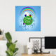 Colorful Planet & Rainbow Cute Bunny Happy Easter Poster