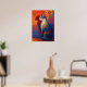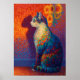 Colorful Pointillism Cat with Sunflowers Art Poster