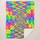 This sherpa fleece blanket features a vibrant psychedelic design with flowing rainbow colors and bold abstract shapes. The energetic pattern creates a fun, eye-catching look with a playful retro-inspired feel.