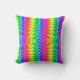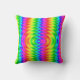 This throw pillow features a bold psychedelic pattern with vibrant rainbow colors and hypnotic zigzag waves. The eye-catching design creates a fun, retro-inspired look that makes a strong visual statement.