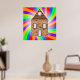 Colorful Psychedelic Brick House Rainbow Design Poster