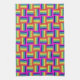 This artwork features colorful rainbow blocks in a fun neon pattern.