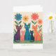 Colorful Retro Cats in Flower Garden – Whimsical Card