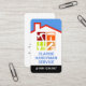 Cover features a rooftop building design with a window that is made from handyman tools. Just below this is the business name which you can change alongside the phone contact at the base.