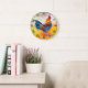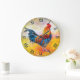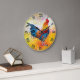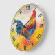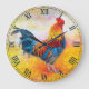 A Colorful Cockerel Rooster Digital Art Oil Painting. This bird art is made as a traditional oil painting look with bright colors in blue, red, orange, and yellow. Farm animal original art painting. Great for a farmhouse rustic decor or anyone that loves chickens. Roman Numbers Clock Face in Dark Blue.