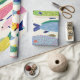 Vibrant coastal-inspired pattern wrapping paper featuring colorful sardines in a playful sketch style. Set against bold abstract brushstrokes in bright hues, this lively design captures a modern Mediterranean aesthetic. Ideal for ocean lovers, seafood enthusiasts, and fans of bold, artistic coastal themes.
