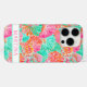 Customize this colorful coral and turquoise watercolor shell iPhone 16 pro case with your your name in a trendy modern CAP font in pink on white. It's so modern and trendy!