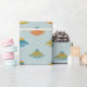 Bright retro spaceships and UFOs on sky blue ... bold, colorful, and instantly fun. Perfect party wrap that kids actually get excited about.