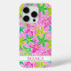 Customize this colorful watercolor starfish in greens and pinks iPhone 15 pro case with your your name in a trendy modern CAP font in pink on white. It's so modern and trendy!