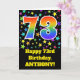 The front of this exciting, fun, and vibrant birthday greeting card design features a colorful star field inspired pattern, along with the number "73" having a multicolored rainbow spectrum like gradient pattern, on a black colored background. The front also features a birthday greeting message, including a personalized recipient name. The inside features a customized birthday greeting message, or could perhaps be cleared and left blank if a message is to be written by hand instead. A custom birthday card like this might be a fun way to send birthday wishes to somebody who is celebrating their seventy-third birthday. [~Z0000348]