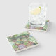 The coasters are gorgeous, a quality feel and heavy weight. They look like a precious archeological find. A rustic stone juxtaposed with a modern floral black and white print. I like the way the print goes slightly imperfect on the cut stone edges giving them a kind-of natural beauty.