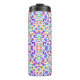 Colorful travel mug with vibrant, symmetrical floral and paisley patterns in purple, pink, blue, and green hues on a white background.
