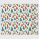Make your holiday gifts merry and bright with this colorful wrapping paper! Stylized evergreen trees in blue, green, gold, and orange, interspersed with snowflakes, gives a retro-modern look to this paper.