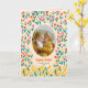 Celebrate Easter with a joyful and personal touch using this colorful spring floral photo greeting. The design features a cheerful pattern of bright tulips and spring flowers surrounding a central oval photo frame, creating the perfect space to showcase your favorite family picture. The lively floral pattern and warm spring colors bring a fresh seasonal feel that beautifully captures the happiness of Easter.