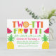 Are you looking for a two-tti frutti invitation for your little girls 2nd birthday? This colorful and simple invitation is a great way to invitation your little one's guests. It features a colorful heading made up of letters and fruit, some pineapples and watercolor pieces. The background is a crisp white. The back of the invitation features a pattern consisting for the watermelon slice and pineapple. This colorful girl's two-tii frutti invitation is ready to be personalized. For more designs in this theme please visit the store.