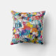 Colorful urban graffiti patchwork pattern throw pillow featuring bold abstract blocks, expressive brush strokes, scribbles, stars, and mixed-media textures in bright blue, yellow, pink, orange, and black. Energetic and edgy with a modern street art aesthetic, this seamless design is ideal for graffiti art lovers, maximalist style fans, creative teens, and contemporary art enthusiasts.