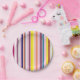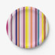 Yellow, pink, purple, blue, green, white , vertical, summer mood stripes paper plates.