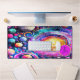 COLORFUL WATERCOLOR OUTER SPACE MONOGRAM DESIGN DESK MAT