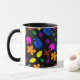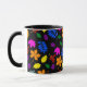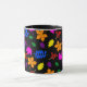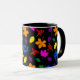 As the days and nights grow colder, sip your warming beverage from this cheerful mug with its autumnal/fall theme made brighter with rainbow colors.