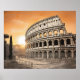 Famous roman colosseum landmark creating a historical travel concept at sunset in an illustration drawing style