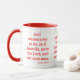This coffee mug invites reflection on the profound message from Colossians 3:23 of the King James Version: "And whatsoever ye do, do it heartily, as to the Lord, and not unto men." It prompts deep spiritual contemplation and inspires one to approach work with sincere dedication and purpose, as expressed in the twenty-third verse of the third chapter of the Book of Colossians, presented in red lettering against a white background. The mug's rim and handle feature matching glazes and are available in both 11-ounce and 15-ounce sizes. These ceramic mugs are safe for use in microwaves and dishwashers.