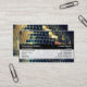 A business card template with an attractive banded layout and a photo background. All details on the front of the card with company name, business type, name and title within a colour band, with address, and other contact details on a white band beneath. Both bands have slight transparency. Ready to be customised with your details. Suitable for many types of business. The background texture image or photo can also be changed.