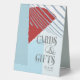 This table tent sign is the perfect size for our tables and easy to read. I also like the material it is made with and no worries about it falling or sliding. Just perfect! Everything about this card is perfect. I like that it says what we want on the front and on the back we were able to personalize a message for our guests.