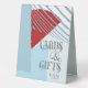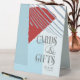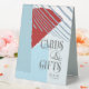 Abstract colour blocking in a cheerful winter colour palette of blues and brick red provides a striking background for the pieces in this contemporary wedding suite. The tent-style 'Cards & Gifts' sign shown here is perfect for the bride who is planning a modern winter wedding. Search ID740 to see other colour options and additional products with this modern design.